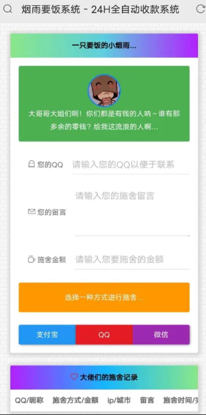 一个php要饭系统源码 绑定自己支付即可要饭了,废话少说上图,好吧,没链接,没违规,我们上传主机或者服务器,绑定域名就OK,最后导入数据库