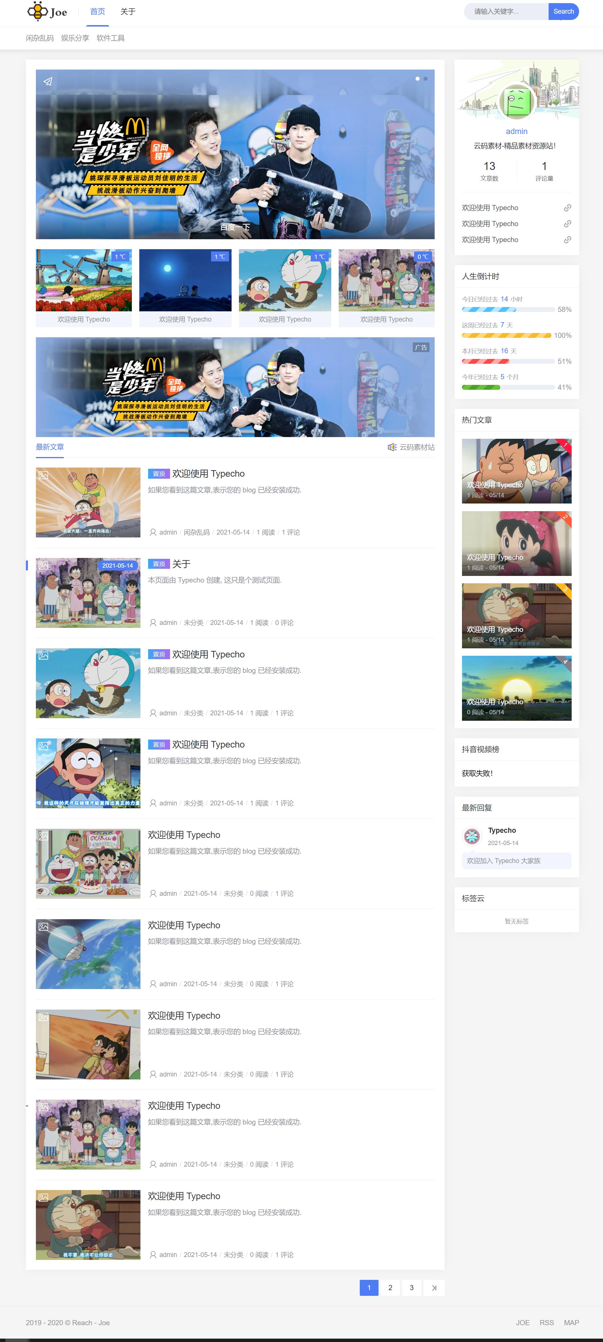 typecho博客模板 Joe-Theme博客模板,开源免费有注释,代码随意修改,响应式布局,支持移动端,ipad,ipad pro,mac等等,大部分设备全部已适配。