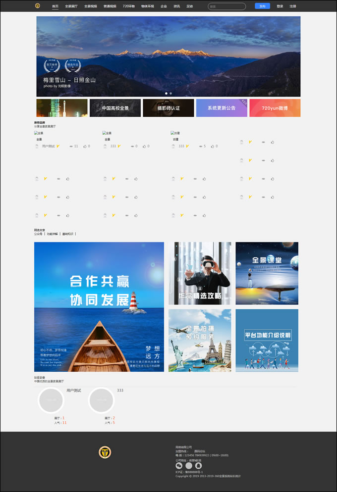 这个程序是一个全景云全景视频在线展示平台,带支付接口会员充值接口,功能还是不错的,喜欢的或者做这一行的站长可以做来试试!